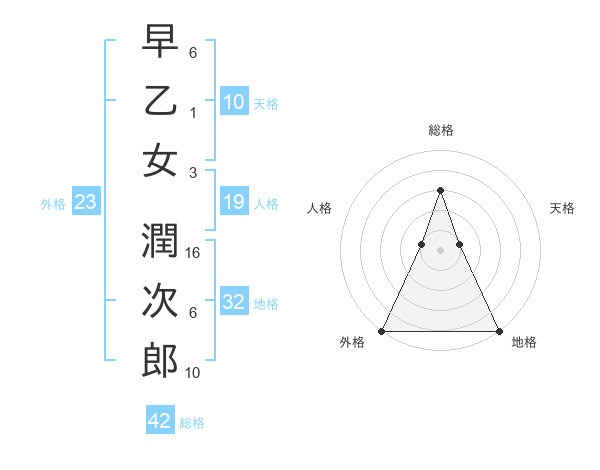 早乙女 潤次郎さんを姓名の画数から五運を鑑定