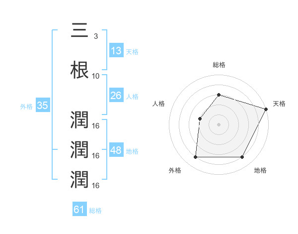 三根 潤潤潤さんを姓名の画数から五運を鑑定