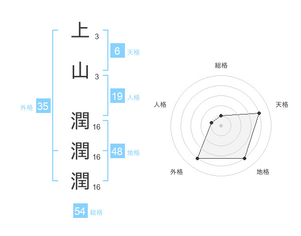 上山 潤潤潤さんを姓名の画数から五運を鑑定