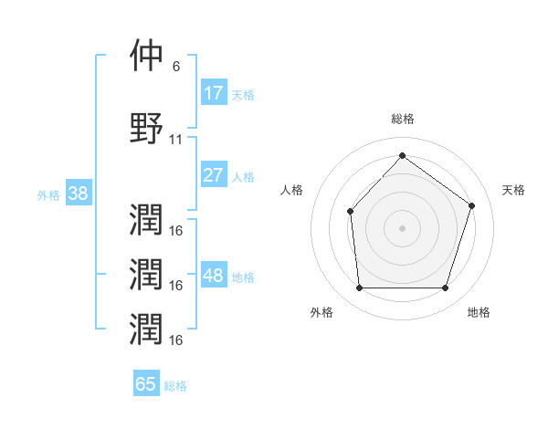 仲野 潤潤潤さんを姓名の画数から五運を鑑定