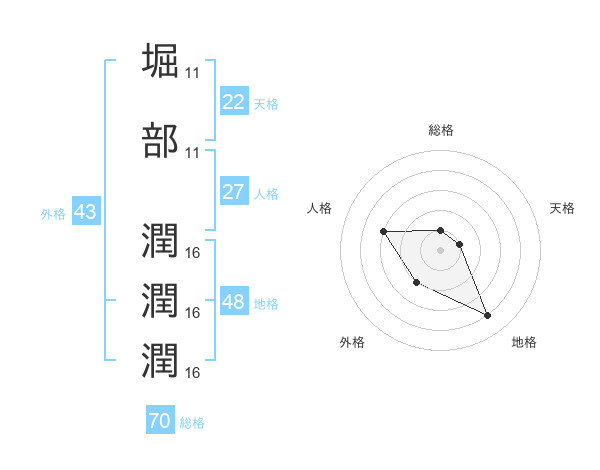 堀部 潤潤潤さんを姓名の画数から五運を鑑定