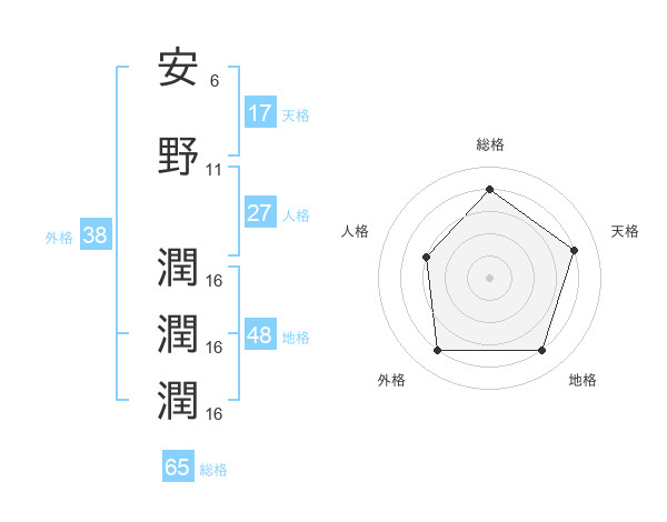 安野 潤潤潤さんを姓名の画数から五運を鑑定