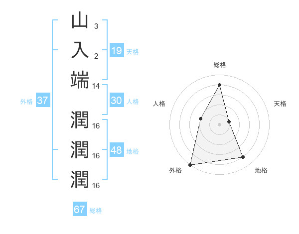 山入端 潤潤潤さんの外格は37画の5点!