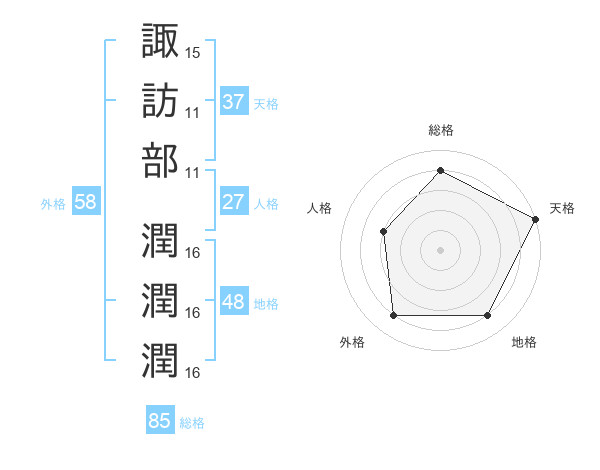 諏訪部 潤潤潤さんの外格は58画の4点!