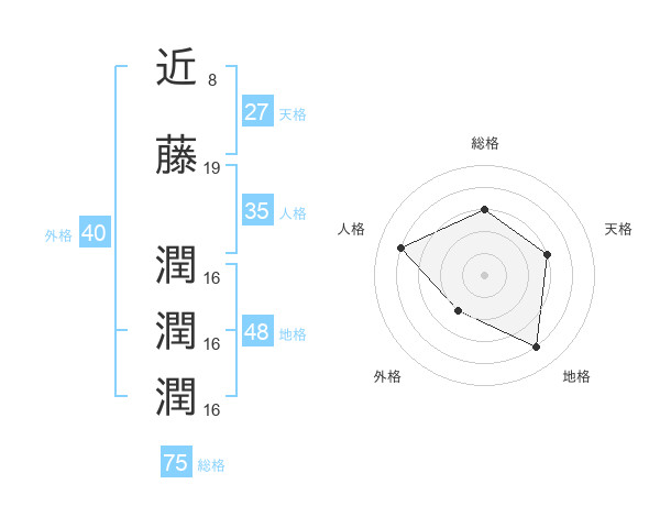 近藤 潤潤潤さんを姓名の画数から五運を鑑定