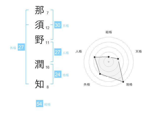 那須野 潤知さんを姓名の画数から五運を鑑定