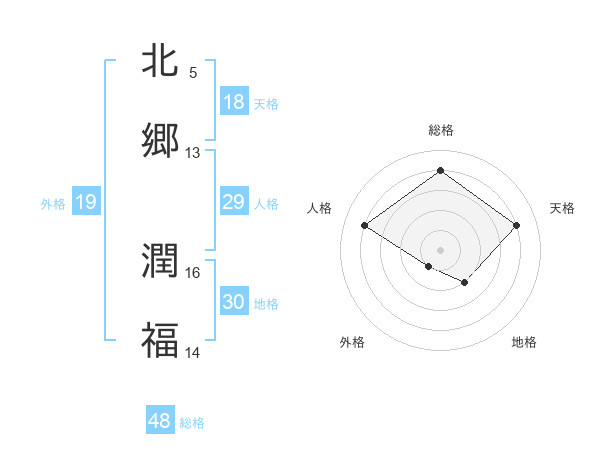 北郷 潤福さんを姓名の画数から五運を鑑定