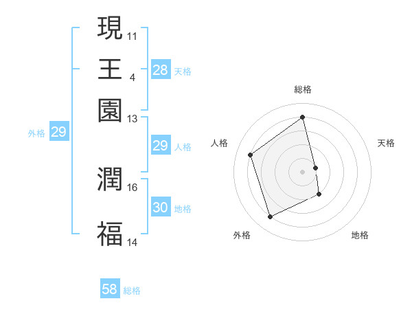 現王園 潤福さんの総格は58画の4点!