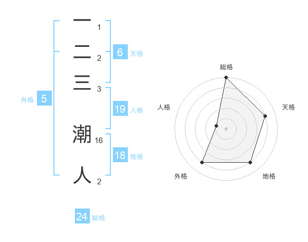 一二三 潮人さんの天格は6画の4点!
