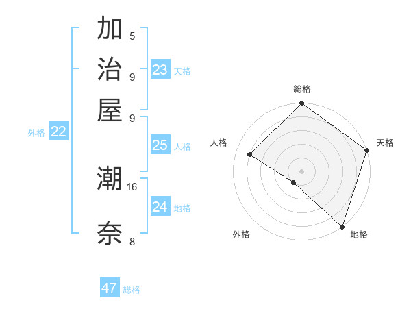 加治屋 潮奈さんを姓名の画数から五運を鑑定