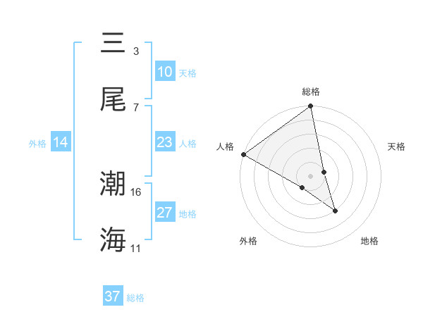 三尾 潮海さんの総格は37画の5点!