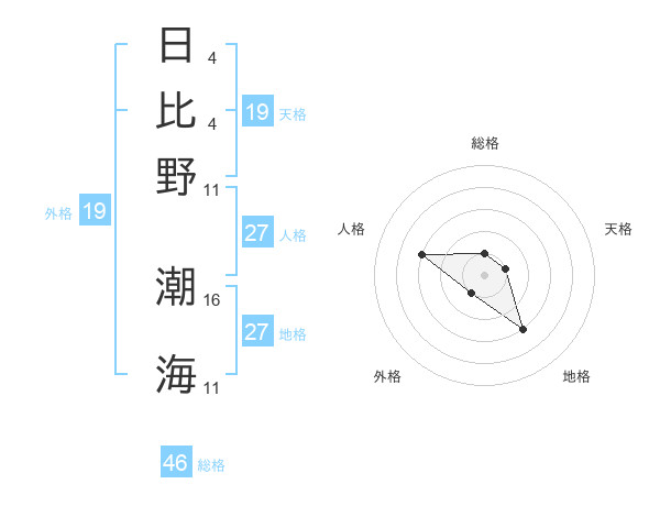 日比野 潮海さんを姓名の画数から五運を鑑定