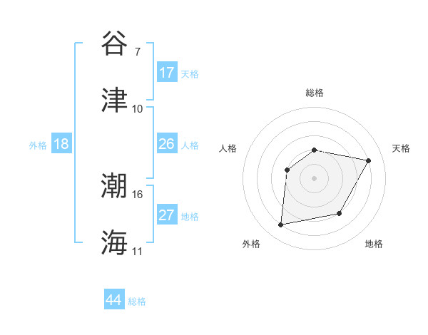 谷津 潮海さんの天格は17画の4点!