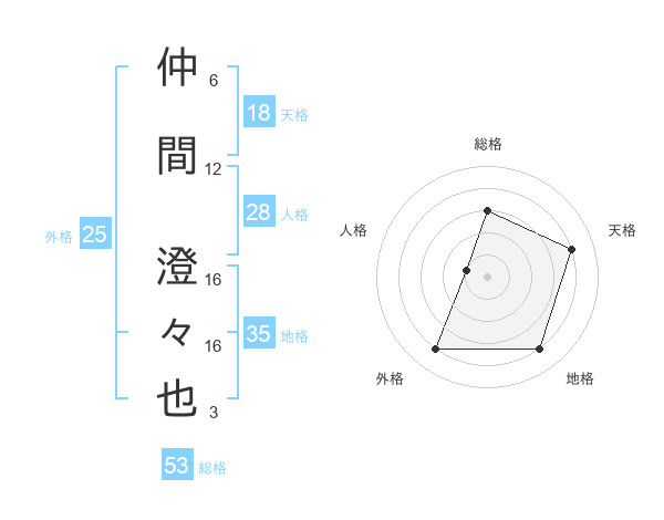 仲間 澄々也さんを姓名の画数から五運を鑑定