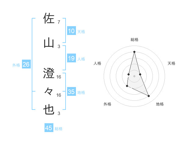 佐山 澄々也さんの総格は45画の4点!