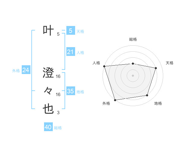 叶 澄々也さんを姓名の画数から五運を鑑定