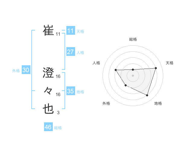 崔 澄々也さんの人格は27画の3点!