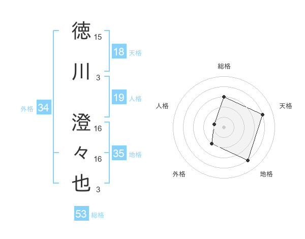 徳川 澄々也さんを姓名の画数から五運を鑑定