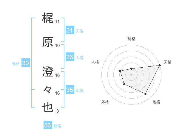 梶原 澄々也さんを姓名の画数から五運を鑑定