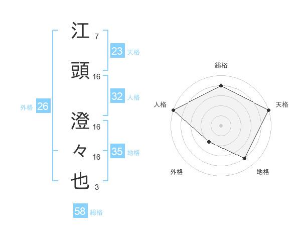 江頭 澄々也さんを姓名の画数から五運を鑑定