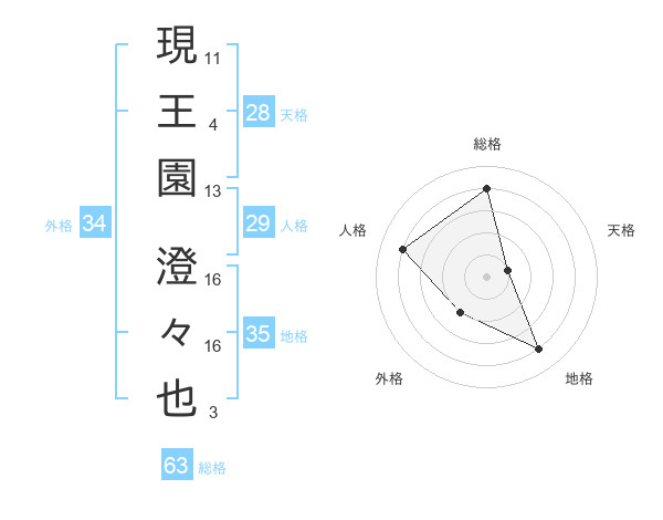 現王園 澄々也さんを姓名の画数から五運を鑑定