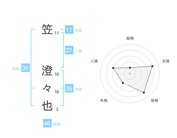 笠 澄々也さんを姓名の画数から五運を鑑定