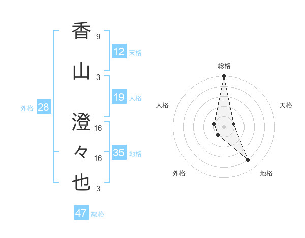 香山 澄々也さんを姓名の画数から五運を鑑定
