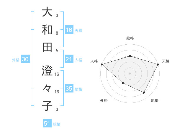 大和田 澄々子さんを姓名の画数から五運を鑑定