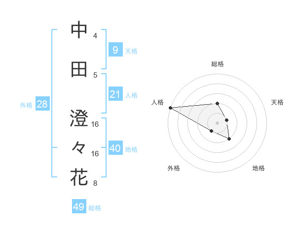 中田 澄々花さんを姓名の画数から五運を鑑定