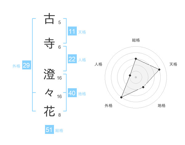 古寺 澄々花さんを姓名の画数から五運を鑑定