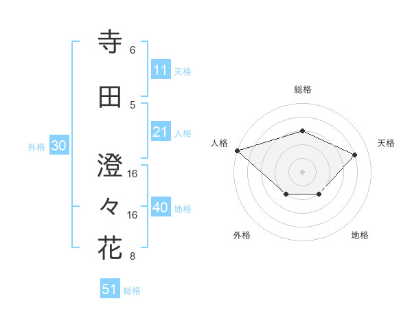 寺田 澄々花さんを姓名の画数から五運を鑑定