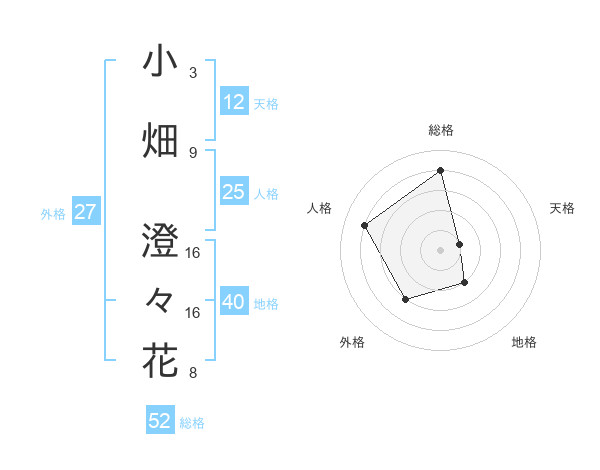 小畑 澄々花さんを姓名の画数から五運を鑑定