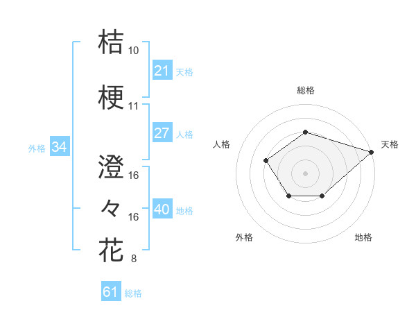 桔梗 澄々花さんを姓名の画数から五運を鑑定