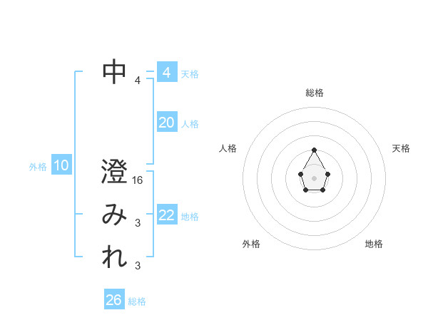 中 澄みれさんの地格は22画の1点!