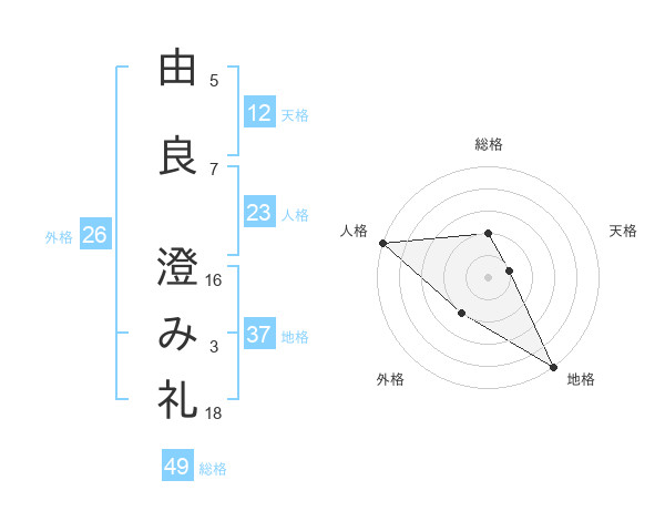 由良 澄み礼さんの総格は49画の2点