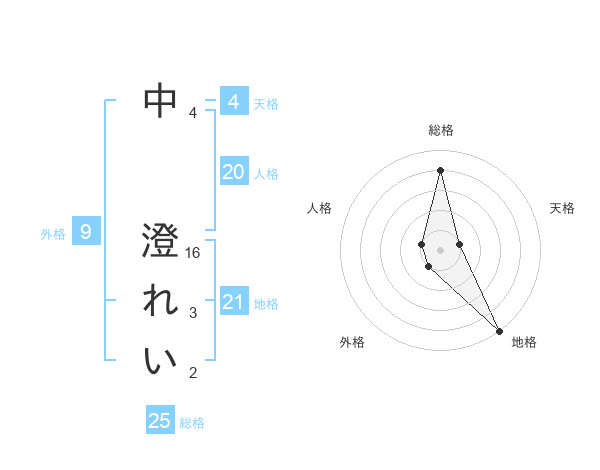 中 澄れいさんの地格は21画の5点!