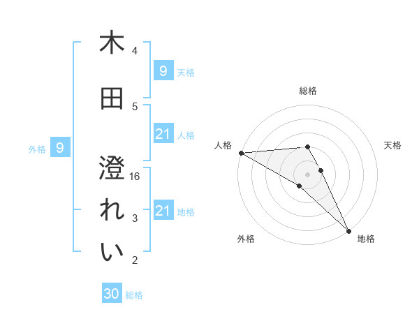 木田 澄れいさんを姓名の画数から五運を鑑定