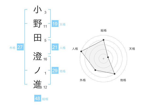 小野田 澄ノ進さんを姓名の画数から五運を鑑定