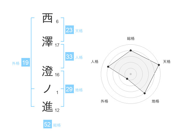 西澤 澄ノ進さんを姓名の画数から五運を鑑定