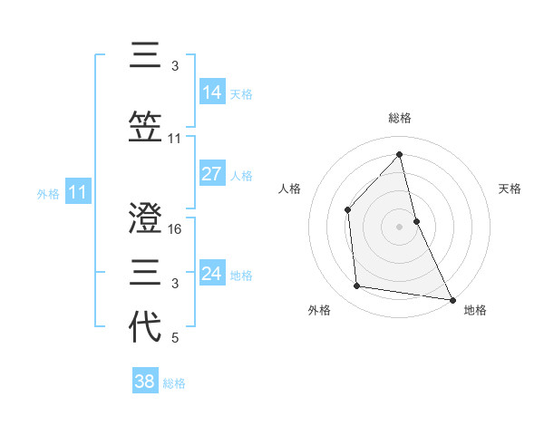 三笠 澄三代さんの総格は38画の4点!