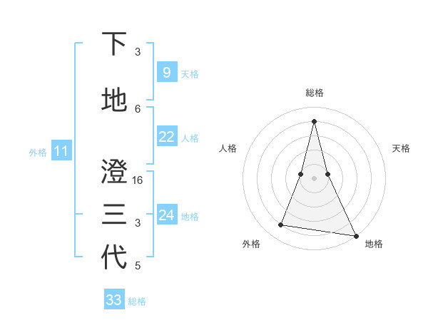 下地 澄三代さんを姓名の画数から五運を鑑定