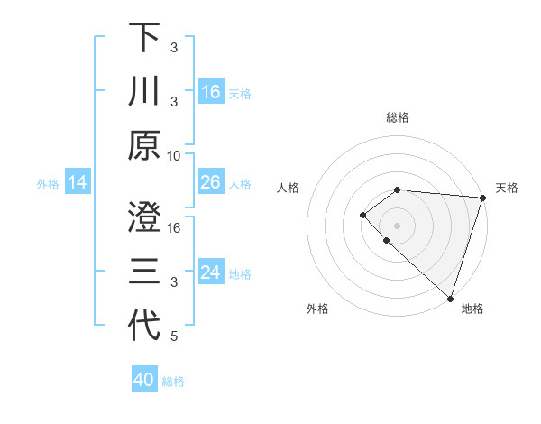 下川原 澄三代さんを姓名の画数から五運を鑑定
