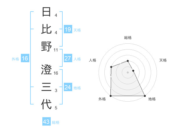 日比野 澄三代さんを姓名の画数から五運を鑑定