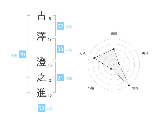 古澤 澄之進さんを姓名の画数から五運を鑑定