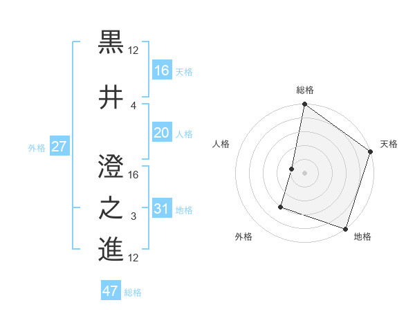 黒井 澄之進さんを姓名の画数から五運を鑑定