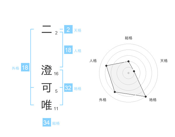 二 澄可唯さんの外格は18画の4点!