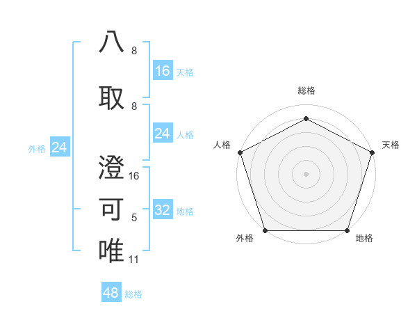 八取 澄可唯さんの総格は48画の4点