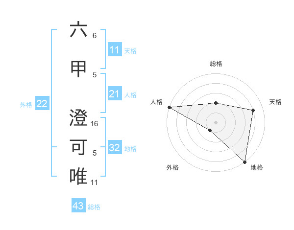 六甲 澄可唯さんの総格は43画の2点!