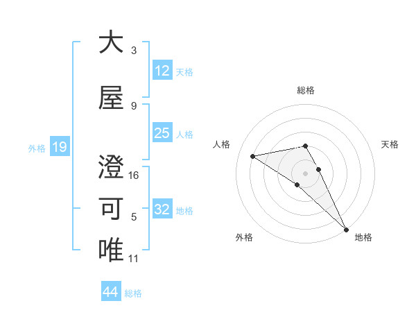大屋 澄可唯さんの地格は32画の5点!