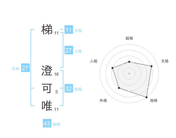 梯 澄可唯さんを姓名の画数から五運を鑑定